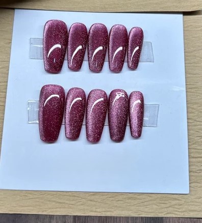 Burgundy cat eye nails bring a velvety richness to any manicure.