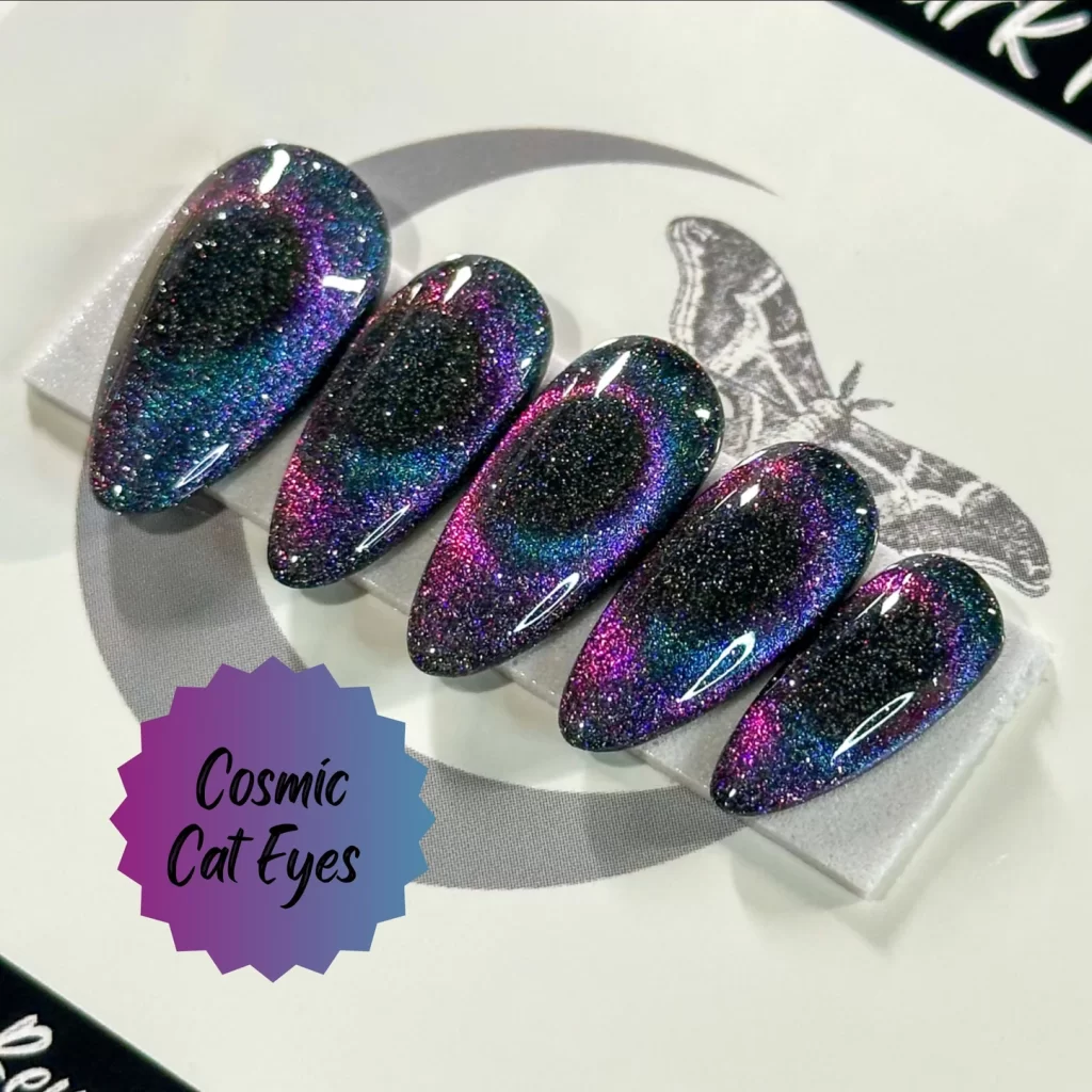 Ultimately, your color choice can reflect your mood or season, making cat eye nails super versatile.